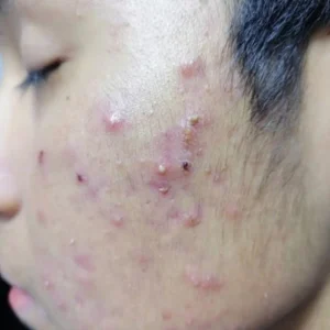 Enfermedad que se presenta, preferentemente en adolescentes, por obstrucción de los folículos pilosos con grasa y células muertas, favoreciendo el crecimiento bacteriano, lo que provoca inflamación y formación de “granos”, mayormente en rostro, con mayor tendencia, intensidad y duración en varones, a veces se presenta en adultos jóvenes en áreas de mentón, espalda y pecho.